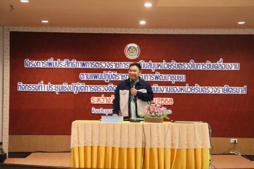 การประชุมครั้งนี้มุ่งเน้นการตรวจติดตามผลการดำเนินงานของหน่วยรับตรวจให้สามารถขับเคลื่อนงานตามนโยบายรัฐบาล กระทรวงมหาดไทย และแผนปฏิบัติราชการกรมการพัฒนาชุมชนประจำปีงบประมาณ พ.ศ. 2568 โดย